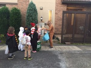 ☝1時間ほど周遊し、お菓子袋はてんこ盛り!再度教室前に集合です。今年も私からは光物をプレゼントしました。綺麗に発光していましたね♪