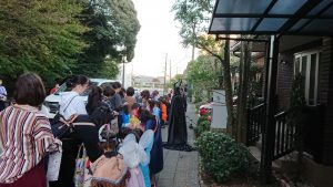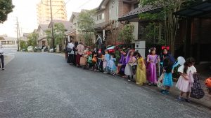 寒くもなく、日中の強風も収まり、仮装日和となりました。夕方のお忙しい時間帯にも関わらず、大勢の生徒さんと保護者様にご参加いただきまして、ありがとうございました。